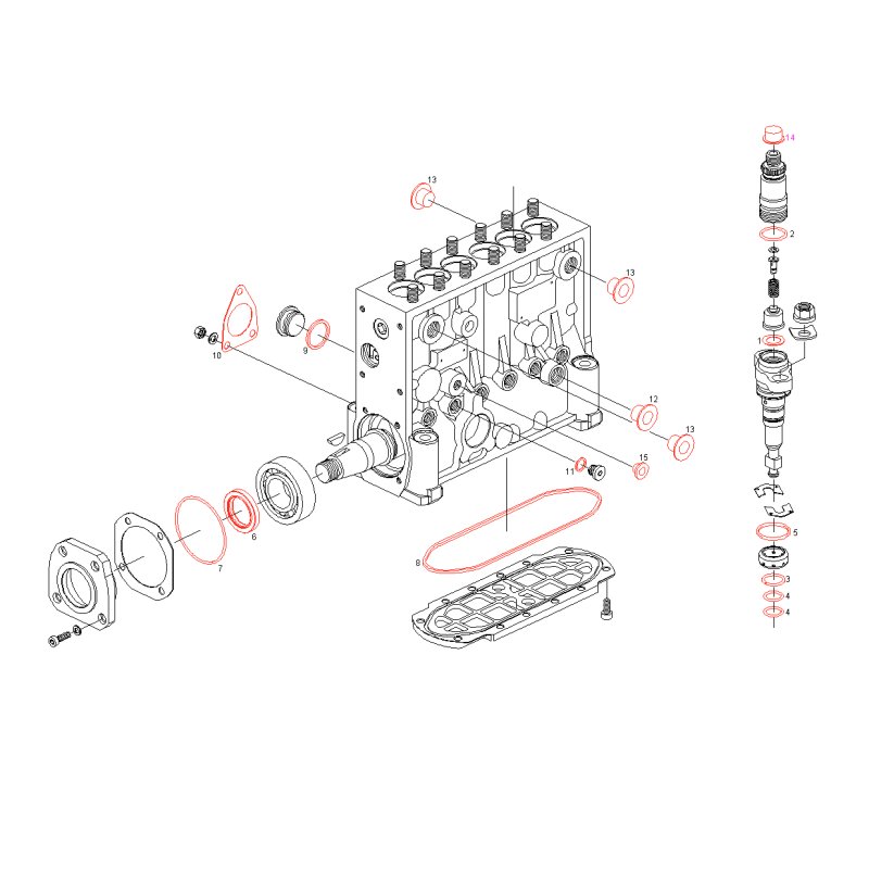 Seal repair kit for some Bosch PE6P and PES6P inline injection pumps